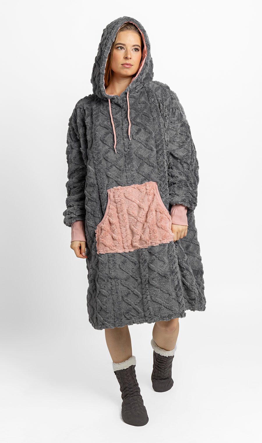 Mega mikina šedo-růžová